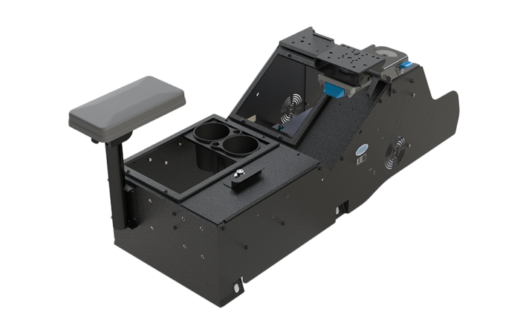 Gamber-Johnson 2019+ Chevrolet Silverado Wide Body Console Box with Internal Printer Mount, Cup Holder, Tall Rear Armrest and Mongoose® XLE 9″ Motion Attachment (7170-1063-02)